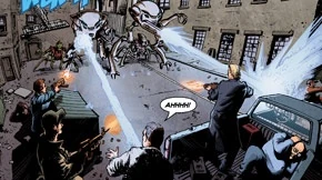 - ↑ Opening panel sets this battle 4 weeks after the assault on Boston. (Eight Hours)