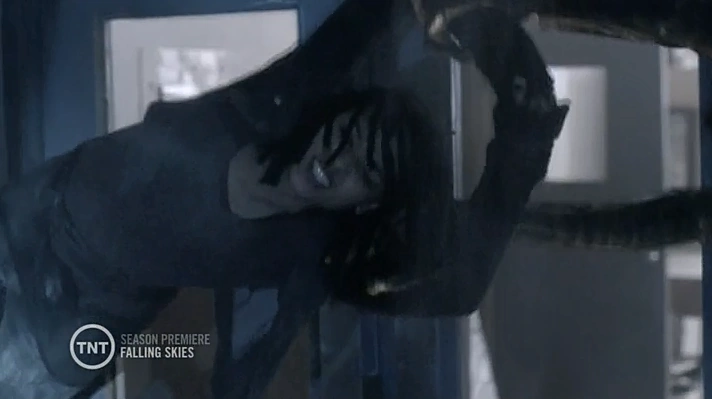 When preparing for the Espheni attack, Dingaan Botha recruits Denny to accompany him on the scouting mission to find out when the Espheni troops are near. Dingaan and Denny talk about music, but soon are cut off by the sound of the Espheni troops. The two run through the streets, and when Dingaan finds Chinatown residents sitting in the streets he tries to move them, however only convinces one to go back with them as the others believe that the Espheni will not hurt them, and Denny pulls Dingaan away from them before they are killed. Dingaan and Denny soon alert Maggie and Hal that the troops are arriving, and they cover behind a barricade. When the Mega-Mechs are taken out, Dingaan runs back to the center of Chinatown. When Dingaan and Denny are running through the street, the broken gas line creates a chain of explosions killing many fighters, and Denny jumps in front of Dingaan to protect him. Denny injures her leg during the explosion, and Dingaan carries her back to the center of Chinatown. Dingaan asks how to stop the bleeding, however her spikes give her the ability to heal, and Denny remarks that Dingaan ruined her favorite pair of jeans. She later hides in the fallout shelter with the remaining survivors.