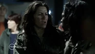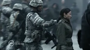 After Lexi emerges from her cocoon, she walks through Chinatown, and this fighter along with most of the 2nd Mass fighters point their guns at her, however she uses her powers to stop everyone from moving, then puts down Lourdes Delgado. This fighter prepares for the battle with the Espheni, and is one of few fighters that survived when the street was destroyed by a gas leak. She later hides in the fallout shelter with the remaining survivors.