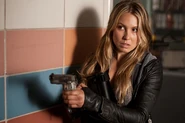 Her emotions run high after killing the creature. She says that she used her family for motivation, when stabbing the skitter. She then finally admits why she hasn't posted any photo or toy to represent her son, Sam, on the missing person’s board -- she simply doesn't have any physical object of his. So instead, she angrily wipes the Skitter’s blood from her hands onto the board, signifying her loss.