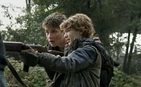 Later, Tom is dropped off in a field somewhere. There, he discovers that other people were held captive on the spaceship as well. A Mech kills everyone, except for Tom, presumably to tell others about what he witnessed. He begins a pilgrimage back to Boston. On his way, he finds a girl, Teresa (Laine MacNeil) being mugged. Tom helps her. Teresa’s mother was murdered and Tom and Teresa bury her. They leave together on Teresa’s motorcycle. Later, they hear Mech fire and people. Teresa decides to leave and go to the mountains. Tom stays to find other survivors. There, he finds a Skitter. Tom kills the Skitter, hears gunshots, and using the Skitter as a shield is shot by his son, Ben, who only sees the Skitter.